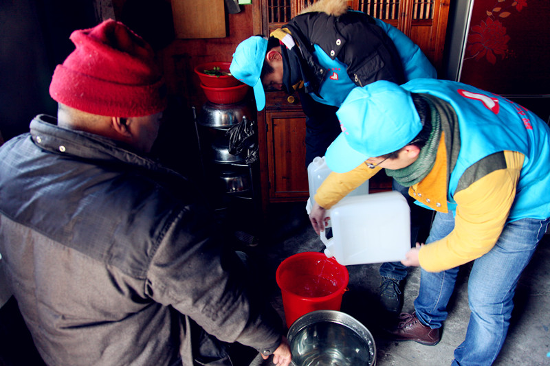 上午10點,在夏履鎮(zhèn)聯(lián)華村,氣溫還是非常低,只有零下4度,極寒天氣給村民的用水帶來了一定的影響。今年79歲的孤寡老人李大爺半邊殘疾,行動不便,這幾天停水,他只能拜托村民幫他去挑水,正在發(fā)愁之際,送水的志愿者已經(jīng)來到他家,當(dāng)志愿者將水倒進村民們空空的水桶中時,老人們都感激萬分,這雪中送水的情誼讓他們在冰凍天感受到了溫暖。