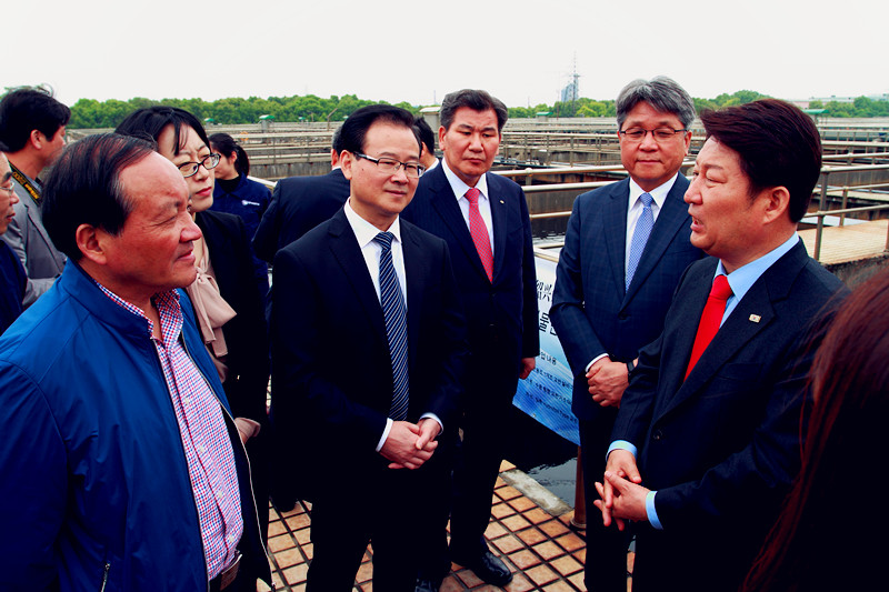 4月25日,由韓國大邱市市長權(quán)泳臻帶隊(duì)的韓國大邱市友好經(jīng)貿(mào)訪問團(tuán)一行26人,在紹興市副市長徐明光、副區(qū)長王志強(qiáng)等陪同下,到紹興水處理公司參觀考察。集團(tuán)公司副總經(jīng)理胡張堯等陪同。