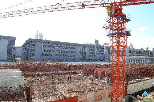 大型吊裝設備來回搬運、挖掘機作業不斷,工人們正在抓緊施工作業。這幾天,濱海第二水廠二期工程現場呈現一派忙碌的建設景象。