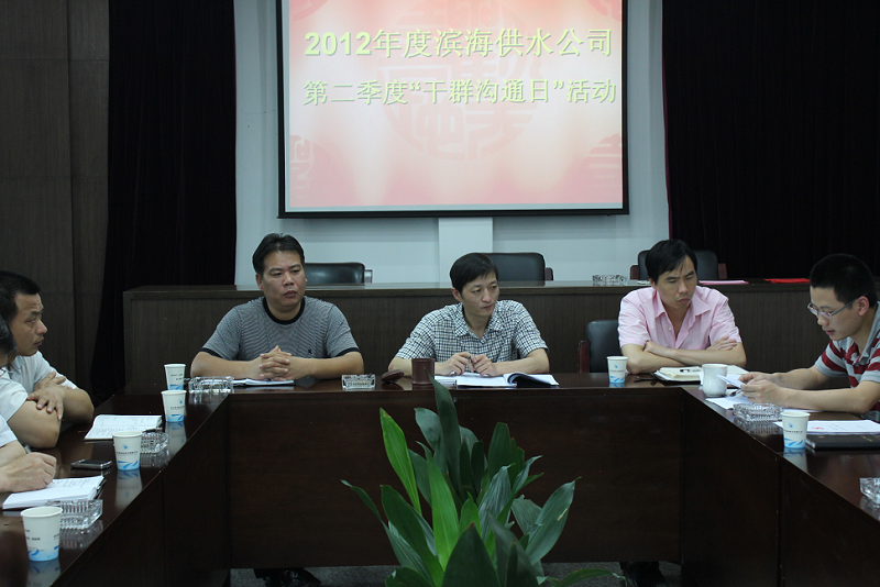 627,濱海供水公司開展第二季度“干群溝通日”活動,黨支部全體黨員、發展對象共29人參加座談。座談會由黨支部書記吳紹文主持。