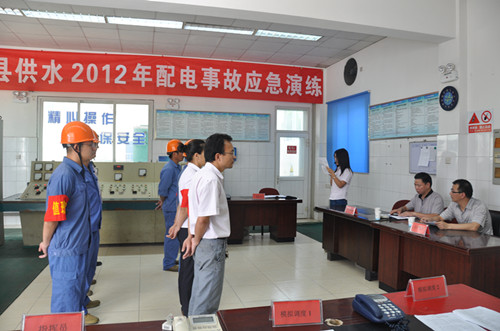 為全面深化安全生產(chǎn)月活動(dòng),提高部門職工對(duì)突發(fā)事故的分析與應(yīng)急處理能力,確保全縣供水系統(tǒng)安全可靠的運(yùn)行,6月29日,公司在鳳凰山泵站舉行2012年配電反事故應(yīng)急演練。
