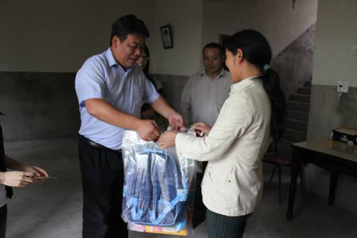 圖為公司領(lǐng)導(dǎo)董衛(wèi)江副總為貧困兒童家庭送上慰問(wèn)金和學(xué)習(xí)用品。