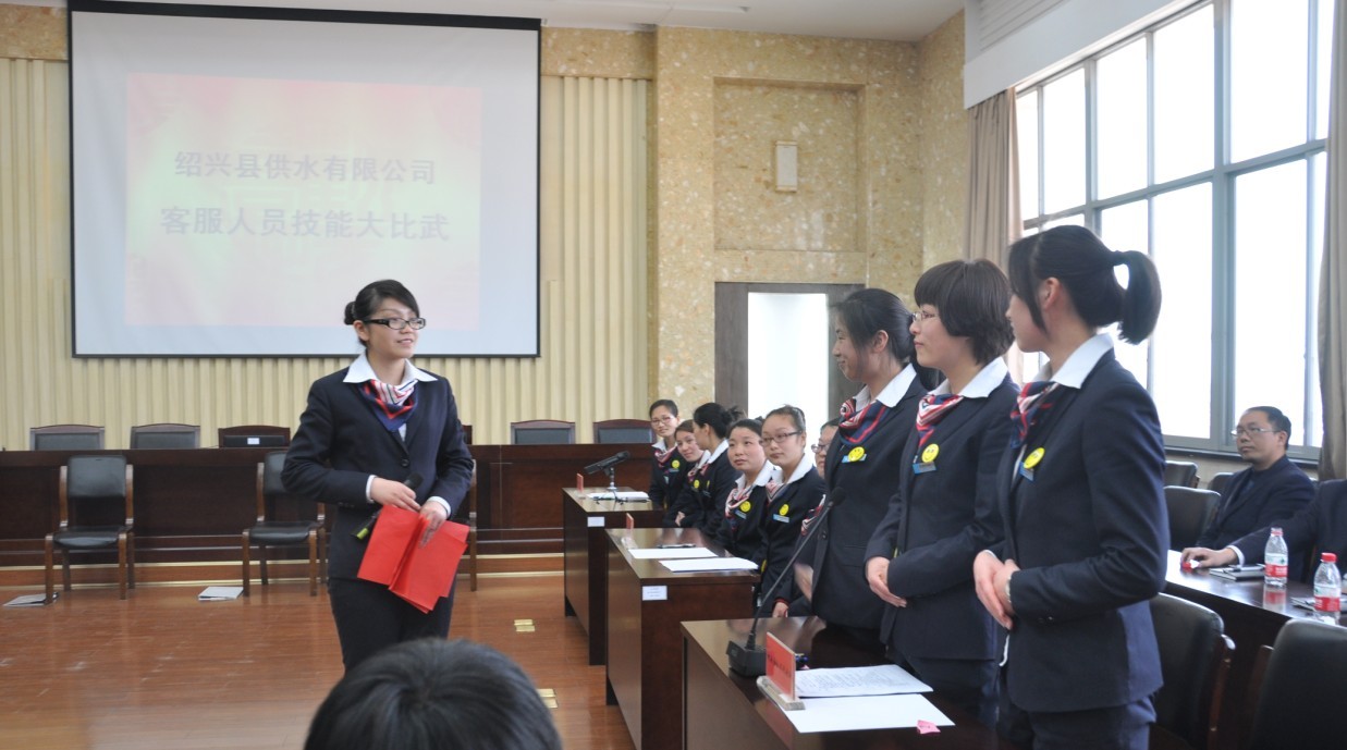 本次比武,共有6支隊伍18人參加角逐,由集團企管部和公司領導擔任本次比武的評委,各部門、單位派職工代表現場觀摩比武。通過服務禮儀展示、供水知識問答、案例分析和情景模擬等四個項目的比試,充分展示了公司營業(yè)客服人員的業(yè)務素質和服務技能,經過激烈角逐,公司代表隊趙瓊獲得一等獎;柯北分公司代表隊駱春琴、葉紅芳獲得二等獎;公司代表隊張超男、城區(qū)分公司代表隊魏麗麗、王吉莉獲得三等獎。