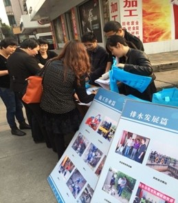 為配合小區(qū)污水管網(wǎng)改造工程項目,3月27日,公司組織人員在錢清永通花園、華清住商樓門口設攤宣傳,熱情地向居民介紹“五水共治,治污先行”方針政策,倡導居民對亂排放、違規(guī)排放的行為進行監(jiān)督,讓居民意識到即將動工的雨污分流小區(qū)是一項優(yōu)環(huán)境惠民生的工程。