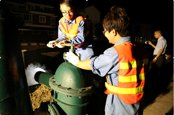 6月27日晚10點,濱海供水公司員工在馬鞍鎮寶善橋村南周畈開啟排泥閥對馬鞍鎮生活水總管進行沖洗,直至凌晨1點,水質檢驗合格,總管沖洗完畢。接下來幾天,公司還將分區塊對各支管進行沖洗,確保優質供水到戶。